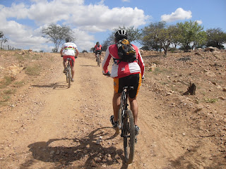 Até que enfim conseguimos.Achar essa rota que liga Salgueiro, Riacho do Fogo a Pitombeira não foi fácil.Três vezes já havíamos tentado e não tínhamos conseguido.Dessa vez deu certo.Problemas com a bike de Val, de Acácio e Avelar, atrapalharam um pouco e fez com que as coisas ficassem mais dificeis pois a alta temperatura nos pegou de cheio.Somos uns vitoriosos pois além da dificuldade do percurso enfrentamos um adversário de peso:o sol, pois a hora ia chegando perto do meio dia e nós ainda tínhamos que pedalar muito.Faltando água, os suplementos já consumidos só nos restavam pedalar e pedalar pra chegar o mais rápido possível antes que o sol nos pegasse de fato.Mas o preparo, o condicionamento físico e mental nos proporcionou mais uma vez vencer tamanha adversidade.